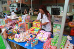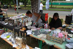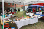 Es gab 'ne Menge Stände. Der Verein der Freunde des Duisburger Tierparks e.V., der Verein mit den meisten Mitgliedern in Duisburg, hatte diverse Spiele für Kinder im Angebot. Türkische Spezialitäten gab es bei der Laar‘er Backstube, der Wunderkiosk hatte einen Kiosk mit Süßigkeiten und Slush-Eis aufgebaut. Der CVJM mit Herrn Rahm, unserem ältesten Ständebetreiber, bewirtete in seiner Weinstube die Gäste mit verschiedenen Weinen. Bei der kfd gab´s die leckeren Waffeln nach dem Rezept von Oma Leuer. Bei der AWO konnten Kinder sich schminken lassen und bekamen Popcorn für umme. Der Stadtsportbund hatte diverse Spielgeräte aufgebaut, z.B. eine riesige Fußballwand. Die Kinder hatten sichtlich Spaß. Die CDU und die SPD waren mit einem Infostand vertreten, ebenso wie die neue Tagespflege an der Friesenstraße. Selbstgebastelte Kleinigkeiten konnte man auch käuflich erwerben. Die Gilde der Knotenmacher war mit ihrer Seilmaschine vertreten. Das Museum der Deutschen Binnenschifffahrt, das an dem Tag keinen Eintritt nahm, verkaufte Bücher. Viel über Bienen konnten die Besucher beim Honigfahrrad lernen. Selbstverständliche konnte man dort auch verschiedene Sorten Honig kaufen. Ein besonderes Highlight war mal wieder das Café Viereinhalb. Auf 4 ½ Quadratmetern servierte das Betreiberpaar leckere Kaffeespezialitäten sowie köstlichen Kuchen. Und das alles vegan! Ein kühles Blondes und andere kalte Erfrischungsgetränke bot unser Laarer Karnevalsverein Rot-Gold an. Bei Kusep konnten die Besucher sich einen appetitlichen Döner kaufen. Wir, die Bürgervereinigung, haben Würstchen gegrillt. Gelegentlich besuchte auch ein Eismann das Fest.
