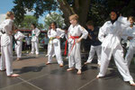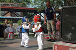 Das Programm begann mit einer Vorführung des Taekwondo Centers Duisburg e.V. aus Laar. Timur Mutlu, der Besitzer dieser Kampfsportschule, kämpfte mit seinen Kindern und Jugendlichen auf der Bühne. Es folgten die Singenden Rollatoren, eine Gruppe gehandicapter Frauen, die einige Lieder sangen und uns immer wieder zeigen, dass man niemals aufgeben soll. Mit ihren Tanzeinlagen erfreute uns die Tanzgarde Rot-Gold; besonders niedlich waren die Kleinsten, die mit ihren 4 Jahren schon auf der Bühne die Tanzbeinchen schwangen. Der Frauenchor der Polizei Duisburg e.V. gab anschließend ein kleines Konzert. Man merkte, wieviel Spaß die Damen haben, wenn sie singen. Zwischen den Auftritten stellten sich Mercators Nachbarn vor. In Gewändern wie die zu Mercators Zeiten halten sie Vorträge, organisieren Führungen und kleine Schauspiele. Um 15.00 Uhr wurde Tango getanzt. Cristos Crema und seine Partnerin vom Verein El Caramelo aus Essen schwebten über die Bühne. Ein Redebeitrag von Manuel Schröder und Thomas Krutmann im Rahmen des Projektes „Laar - das schöne Dorf“ folgte. Zum Abschluss des Festes spielte die Rockcoverband „Buckle Up“ fetzige Rockmusik. Das Publikum war so begeistert, dass das Quartett zwei Stunden spielte. Ein gelungenes Finale!